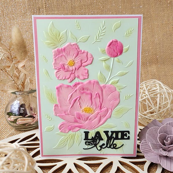 Avec son fond gaufré et ses fleurs en relief, cette carte “La vie est belle” dégage une belle énergie positive.