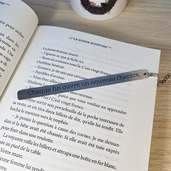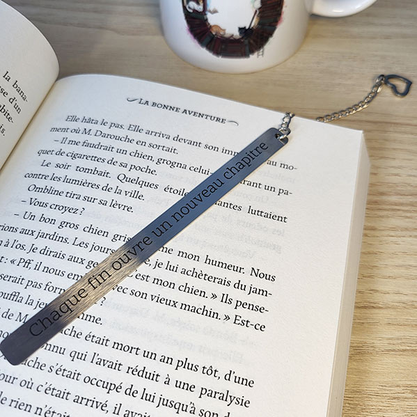 Marque-page personnalisé en acier inoxydable – Gravure laser artisanale