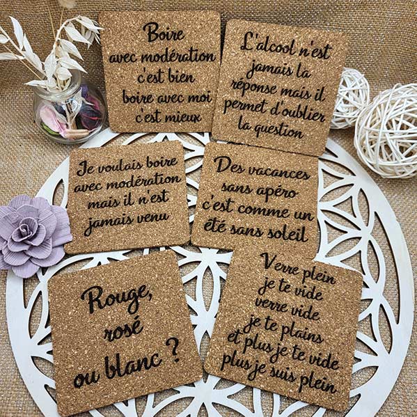 Sous-verres en liège humoristiques
